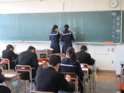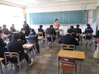 「漢詩・漢文の知識」の問題演習に取り組んでいます。終了後には先生の解説とともに答え合わせをしています。