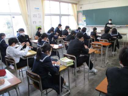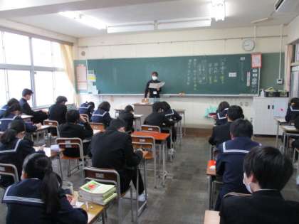 13H:国語 「学年末考査の振り返り」先生が問題1問ごとに解説を付け加えて答え合わせをしています。