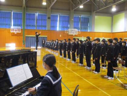 7日(木) 明日の入学式に向けて その1 公開日 2022/04/07 更新日 2022/04/07 東部中学校の様子 明日の入学式に向けて、新入生に披露する歓迎の歌を録音しました。 残念ながら、式本番では歌うことができませんが、2・3年生全員で心を込めて歌いました。