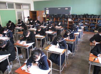 11日(月) 中教研学力調査1日目【2年】 公開日 2022/04/11 更新日 2022/04/11 東部中学校の様子 明日は、残り2教科。社会と数学です。 【写真上:2年1組】 【写真中:2年2組】 【写真下:2年3組】