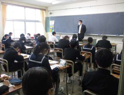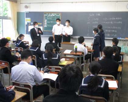 2年生の授業の様子を紹介します。 【写真上:2年学活】 【写真中:2年理科】 【写真下:2年社会】