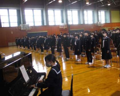15日(金) 創校記念式 公開日 2022/04/15 更新日 2022/04/15 東部中学校の様子 東部中学校の誕生日でもある本日、全校生徒が体育館に集い、創校記念式を行いました。 折橋校長先生から創校当時のエピソードが紹介され、生徒は興味深い表情で耳を傾けました。式では、伝統ある校歌も歌いました。