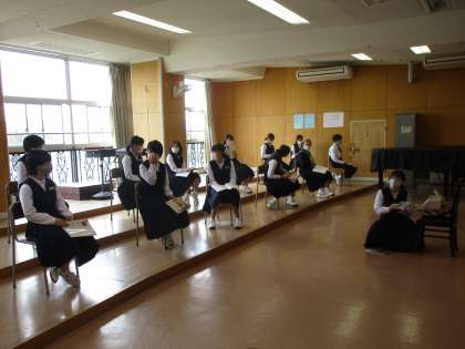 2年生の授業の様子を紹介します。 【写真上:音楽】 【写真中:理科】 【写真下:学活】