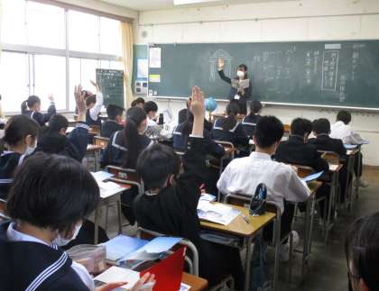 1年生の授業の様子を紹介します。 【写真上:保健体育】 【写真中:国語】 【写真下:数学】