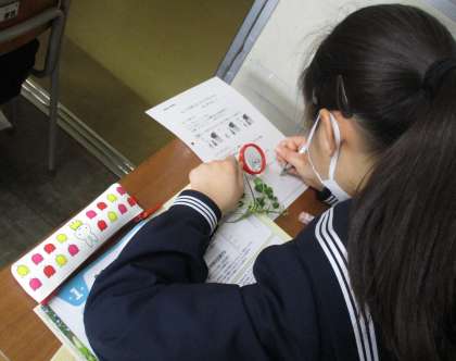 1年生の理科の授業では、ルーペを使って、自分で採集した植物のスケッチをしました。