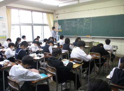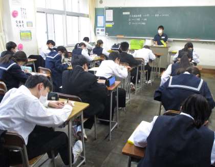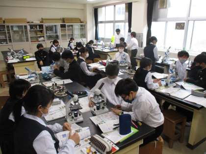 1年生の授業の様子を紹介します。 【写真上:理科】 【写真中:学活】 【写真下:数学】