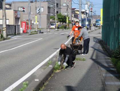 資源回収と同時進行で、奨学会役員の方々で、グラウンド南側の歩道の除草作業を行いました。