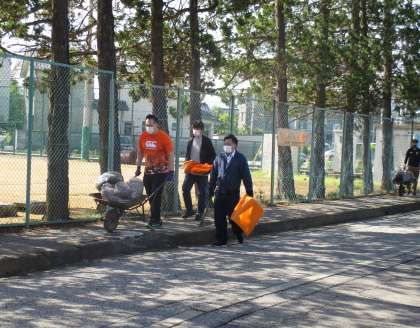 資源回収と同時進行で、奨学会役員の方々で、グラウンド南側の歩道の除草作業を行いました。