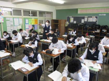2年生の授業の様子を紹介します。 【写真上:国語】 【写真中:保健体育】 【写真下:英語】