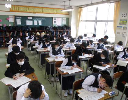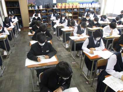 本日、1年生は中学校生活で初めての定期考査でした。 普段の授業で学んだことを生かせましたか。