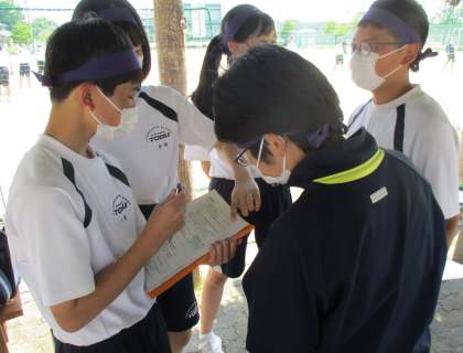 24日(水)最後のリーダー練習 その2 公開日 2022/05/24 更新日 2022/05/24 体育大会 団リーダーだけでなく実行委員のメンバーたちも最終打ち合わせに余念がありません。 最後は、リーダー全員と実行委員で円陣を組み、明日の体育大会の成功に向け、気持ちを一つにしました。 是非とも明日は、この輪が東中生全体に広がることを信じています!