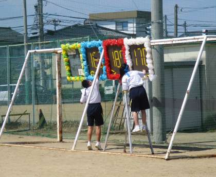 25日(水)第76回 体育大会【係活動】その1 公開日 2022/05/25 更新日 2022/05/25 体育大会 競技や応援合戦だけでなく、係活動で活躍する生徒の様子を紹介します。 【写真上・中:出発合図係】 【写真下:採点・掲示係】