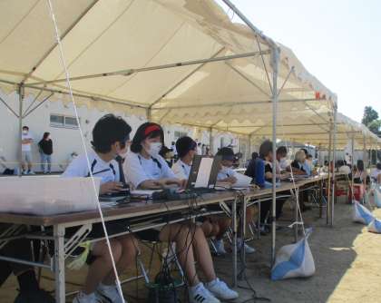 25日(水)第76回 体育大会【係活動】その2 公開日 2022/05/25 更新日 2022/05/25 体育大会 競技や応援合戦だけでなく、係活動で活躍する生徒の様子を紹介します。 【写真上:放送係(実行委員会)】 【写真下:決勝・記録係】