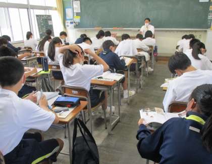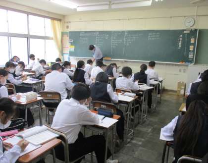 1年生の授業の様子を紹介します。 【写真上:書写】 【写真中:社会】 【写真下:数学】