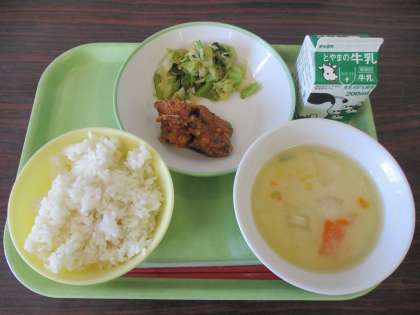 平皿(小松菜ひたし、魚の竜田揚げ)