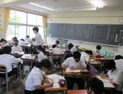 2年生の授業の様子を紹介します。 【写真上:理科】 【写真中:国語】 【写真下:数学】