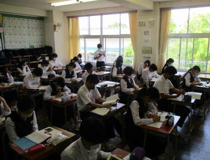 3年生の授業の様子を紹介します。 【写真上:保健体育】 【写真中:理科】 【写真下:国語】