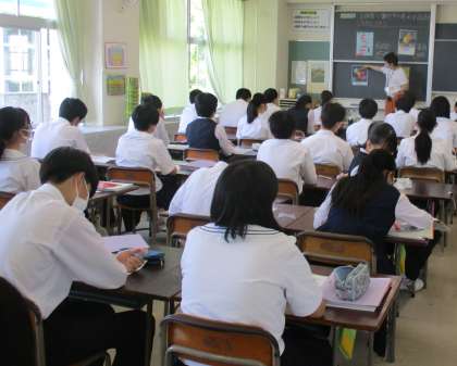 3年生の授業の様子を紹介します。 【写真上:理科】 【写真中:美術】 【写真下:数学】