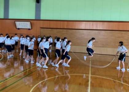 本日2限、3年生は学年合同体育で大縄跳びを行いました。