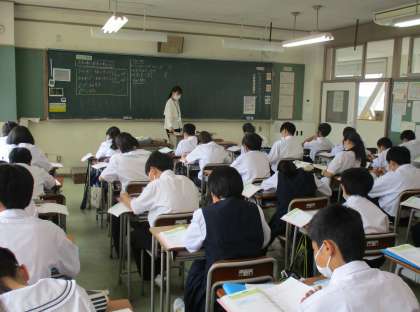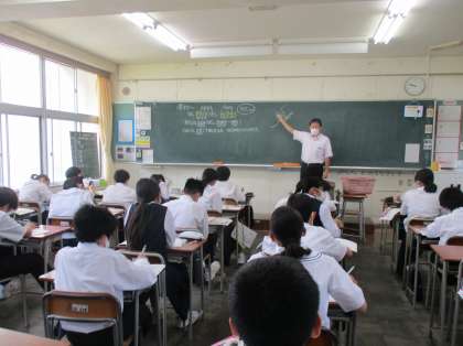 1年生の授業の様子を紹介します。 【写真上:数学】 【写真中:社会】 【写真下:数学】
