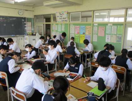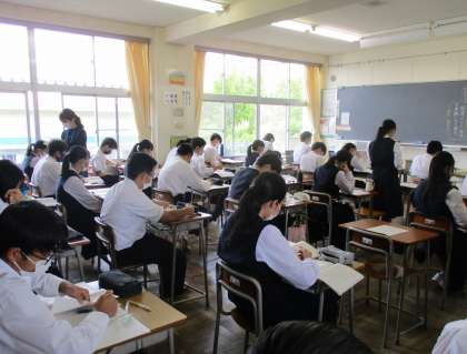 3年生の授業の様子を紹介します。 【写真上:理科】 【写真中:数学】 【写真下:国語】