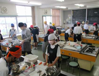 2年生の授業の様子を紹介します。 【写真上:家庭科】 【写真中:美術】 【写真下:英語】
