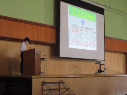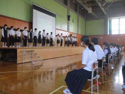8日(水)生徒集会 その1 公開日 2022/06/08 更新日 2022/06/08 生徒会 本日6限、生徒会執行部主催の生徒集会を行いました。 前半は、6月に実施する「東中ECOリンピック2022」について執行部によるプレゼンテーションがあり、全クラスの会長から取組に向けた具体的な学級目標を発表しました。