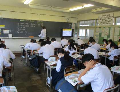 2年生の授業の様子を紹介します。 【写真上:保健体育】 【写真中:社会】 【写真下:数学】