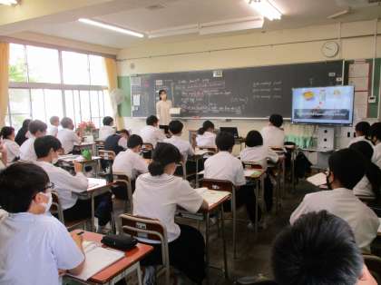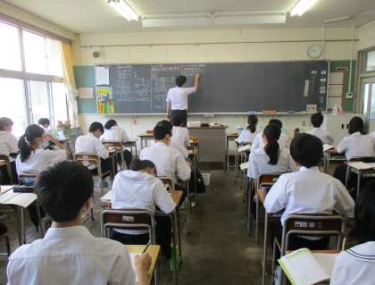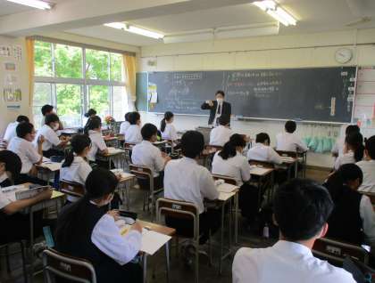 2年生の授業の様子を紹介します。 【写真上:英語】 【写真中:数学】 【写真下:理科】