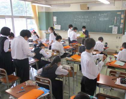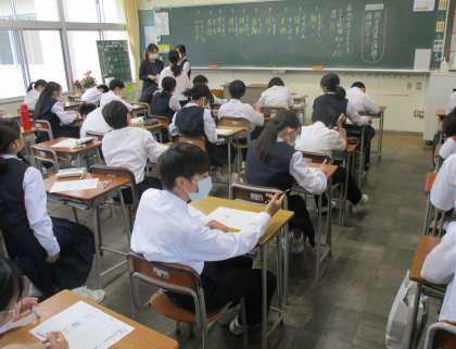 1年生の授業の様子を紹介します。 【写真上:国語(書写)】 【写真中:社会】 【写真下:保健体育】