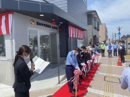 23日(木)石金交番が新しくなりました 公開日 2022/06/23 更新日 2022/06/23 東部中学校の様子 地域の安心・安全の要として、防犯や交通安全などで私たちを見守っていただいている石金交番。 本日、建替工事を終えた交番の竣工式が行われました。
