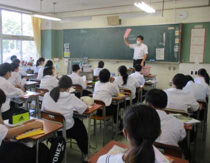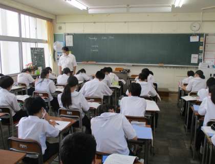 1年生の授業の様子を紹介します。 【写真上:体育】 【写真中:英語】 【写真下:社会】