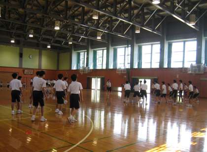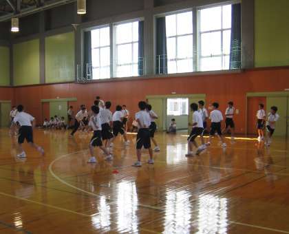クラスの枠を取り払ったドッヂボールなど、暑い体育館で熱いプレー。