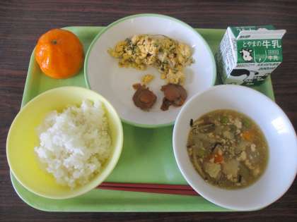 平皿(ベーコンとゴーヤの卵炒め、ほたての照焼き)