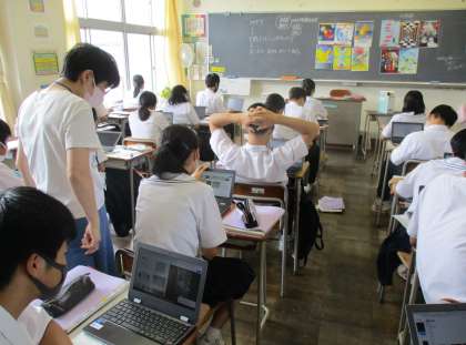 11日(月)学びの様子【3年】その2 公開日 2022/07/11 更新日 2022/07/11 3学年 3年生の授業の様子を紹介します。 【写真上:美術】 【写真下:学活(平和学習「はだしのゲン」視聴)】