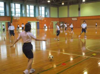 12日(火)学びの様子【3年】その2 公開日 2022/07/12 更新日 2022/07/12 3学年 保健体育の授業の様子を紹介します。 あいにくの雨でしたが、体育館で楽しくサッカーに取り組みました。