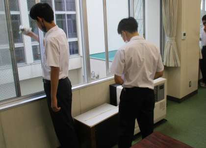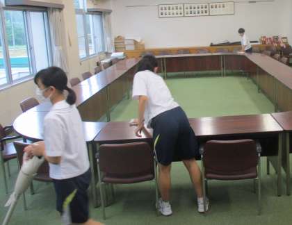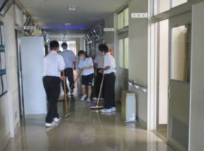 職員室近くの清掃活動の様子を紹介します。 15分間の清掃時間、集中して取り組んでいますか?