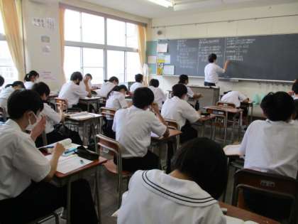 2年生の授業の様子を紹介します。 【写真上:数学】 【写真中:英語】 【写真下:理科】