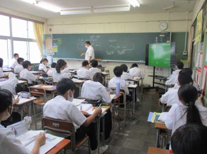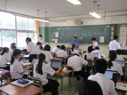 1年生の授業の様子を紹介します。 【写真上:技術】 【写真中:英語】 【写真下:数学】