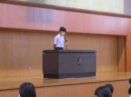 22日(金)意見発表 公開日 2022/07/23 更新日 2022/07/23 東部中学校の様子 終業式の直前には、各学年の代表生徒による意見発表が行われました。とても有意義な1学期だったことが伝わりました。
