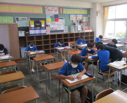 25日(月)部活動の様子 その3 公開日 2022/07/25 更新日 2022/07/25 東部中学校の様子 夏季休業中の部活動の様子を紹介します。 【写真上:美術部】 【写真下:練習後に宿題に取り組む陸上競技部】