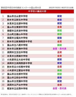 7月30日(土)砺波市文化会館で行われた中部日本吹奏楽コンクール富山県大会に(30人以下の部)に吹奏楽部は参加し、初の金賞を受賞しました。審査員からは「重厚なサウンドで、作品の世界をよく理解し演奏している」「次の(上位)大会に期待します」等の高評価をいただきました。