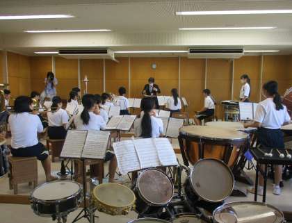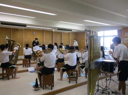 吹奏楽部の活動の様子です。本日は、新聞社の記者の方が取材に訪れました。