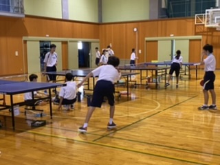 夏季休業中の部活動の様子を紹介します。 【写真上】卓球部 【写真下】女子バレーボール部
