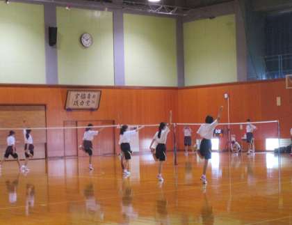 9日(火)部活動の様子 その4 公開日 2022/08/09 更新日 2022/08/09 東部中学校の様子 夏季休業中の部活動の様子(ウォーミングアップ)を紹介します。 【写真上:男子バドミントン部】 【写真中・下:女子バドミントン部】