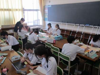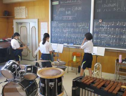 夏季休業中の部活動の様子を紹介します。 【写真上:美術部】 【写真下:吹奏楽部】