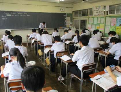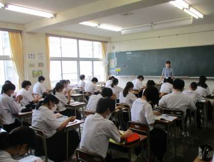 3年生の授業の様子を紹介します。 【写真上:数学】 【写真中:理科】 【写真下:英語】