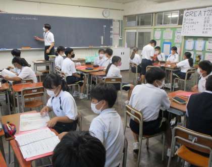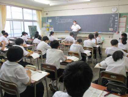 2年生の授業の様子を紹介します。 【写真上:保健体育】 【写真中:学活】 【写真下:社会】