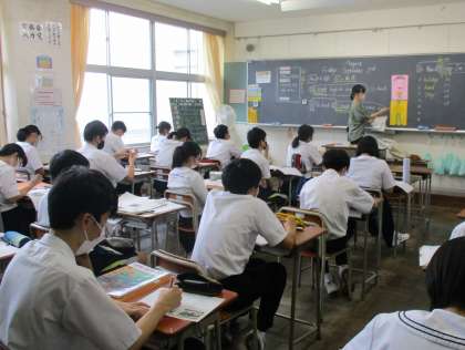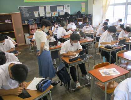 2年生の授業の様子を紹介します。 【写真上:英語】 【写真中:美術】 【写真下:数学】