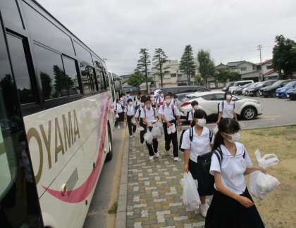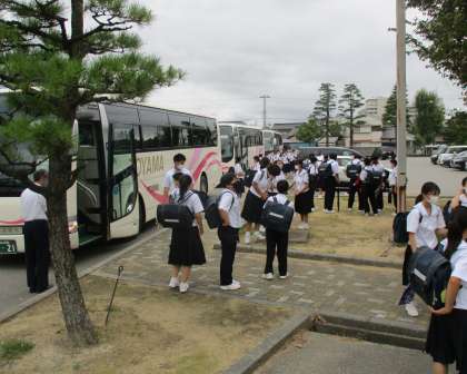 7日(水)校外学習から帰着!【1年】 公開日 2022/09/07 更新日 2022/09/07 1学年 高岡・南砺での校外学習を終えた1年生が、無事学校に到着しました。 見学先の企業や体験学習を通したお土産を手に、充実した表情で家路につきました。 お家では、是非ともご家族で土産話に花を咲かせてください。 活動中の様子については、この後アップしていく記事で紹介します。お楽しみに!